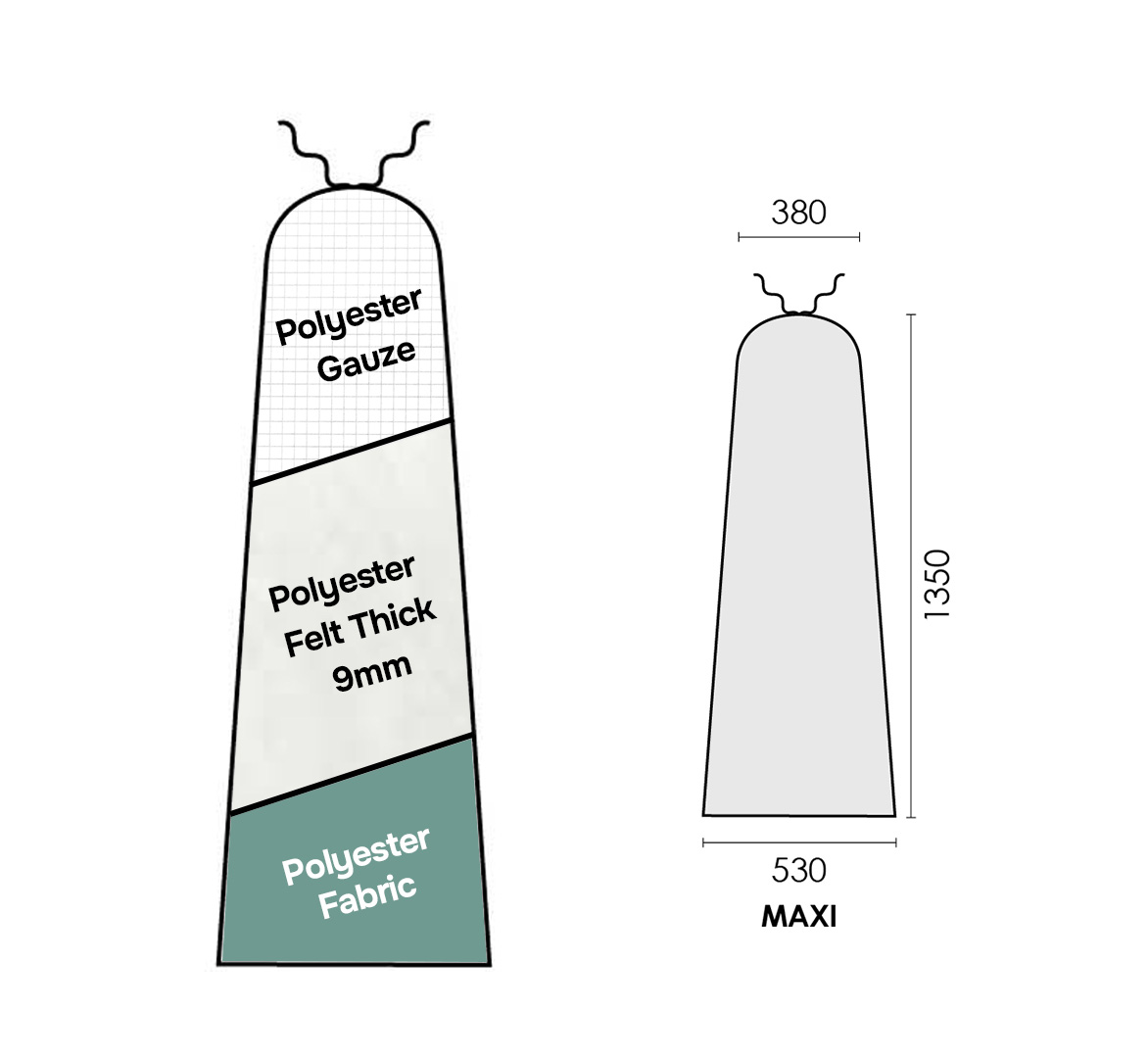 “NORMAL”: tissu polyester + molleton épaisseur 9mm + grillage polyester